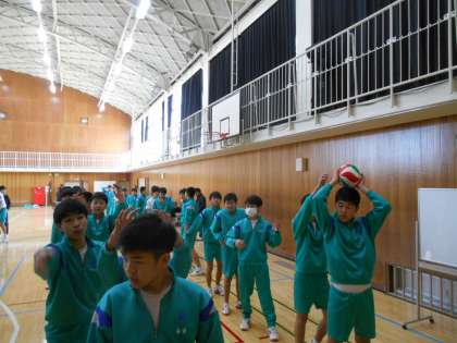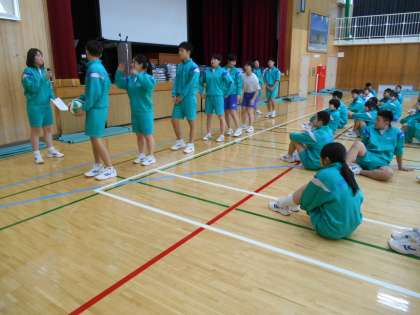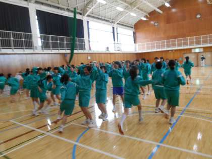 卒業式を明日に控え、3年生は球技大会を実施しました。体育委員会や学級委員会が時間のない中、大奮闘で準備してくれました。すばらしい。写真は、ドッチボールのあとに行ったボール背面リレーです。