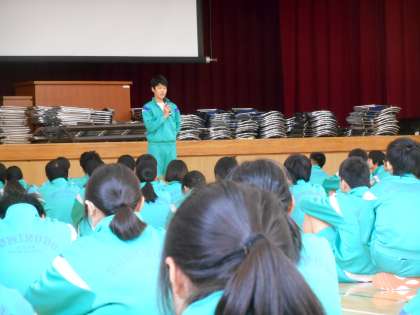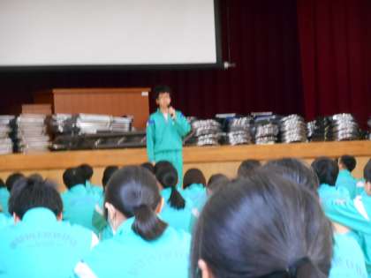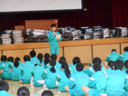 結果発表があり、各クラスの学級委員が3学期の振り返りを発表しています。さすがですよ。原稿なしで内容の濃い発表を全クラス発表してくれました。すごいです。