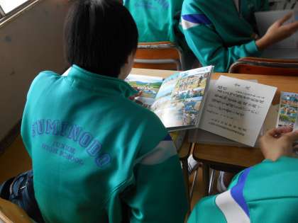 卒業アルバムや通知票、たよりなどを配付しているところです。