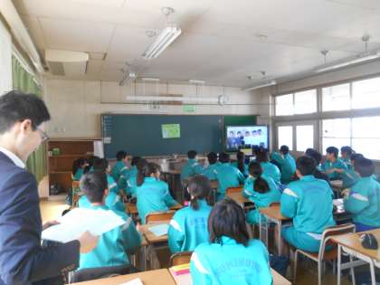 このクラスは1年間の思い出を写真にして見ていました。大盛り上がりです。