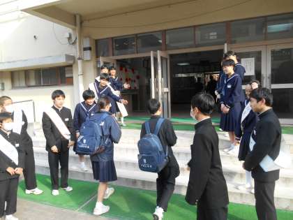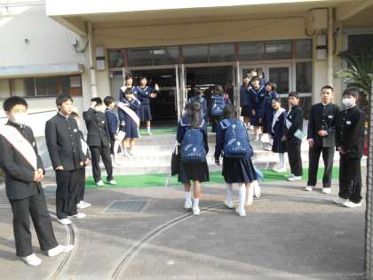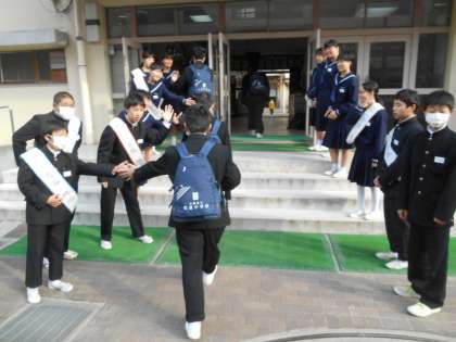 ハイタッチ運動です。立候補者が並んでハイタッチしていました。