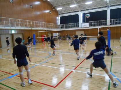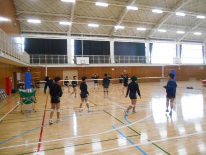 女子バレー部、私が体育館に入るなり、すばらしいスパイクが決まりました。すごいです。