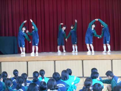 体育の時間に考えたダンスの発表会です。ご機嫌な音楽に合わせてダンスを踊っています。むちゃくちゃかわいいです。保護者の方が見てたら、うれしくて泣くのではないでしょうか。