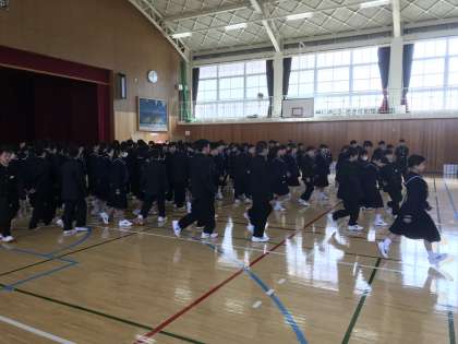 11日の2時間、1年生はいろいろな集合体形の練習の後、学年でPAをしました。クラスの人や学年の人と協力しながら、楽しそうに取り組んでいました。写真は集合体形の練習です。
