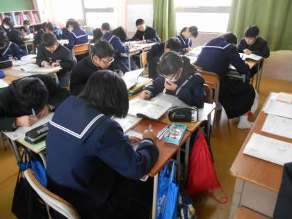 自分で考えたことが正しいのか、答え合わせに来ています。この生徒たちが次に教えに回ることが多いです。