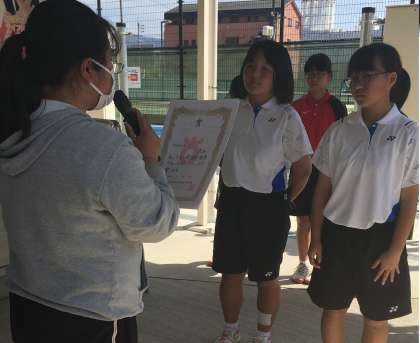 4月13日(土)に大東公園テニスコートで行われた大東市春季ソフトテニス大会において、3年生の部では優勝、準優勝、2年生の部では準優勝となり、合計3ペアが入賞しました。今日はコート内はとても暑く、体調がすぐれないペアもありましたが、見事入賞を果たしてくれました。入賞できなかったペアも次の大会に向けて、チーム全体で強くなれるよう練習していってほしいと思います。多くの保護者のみなさまが、試合を見に来られていました。ありがとうございました。