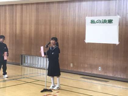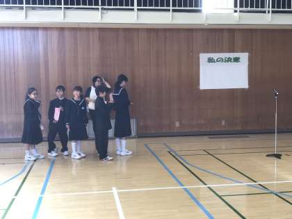 15日の6時間目は「私の決意」のビデオ撮影をしました。中学生になっての決意を短冊に書いてもらい、その短冊をみんなの前で大きな声で読み上げました。卒業前にみんなでビデオを見ますので、三年後を楽しみにしていてくださいね。