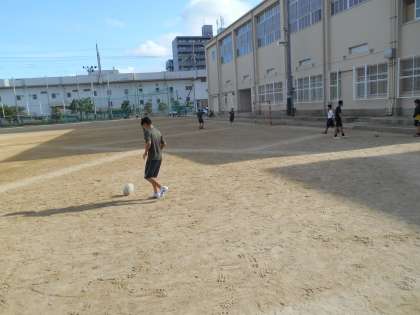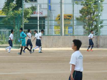 さわやかな朝です。ラグビー部とサッカー部です。