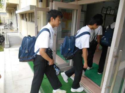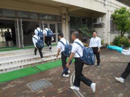 今日は朝礼があります。元気に登校する人たちです。