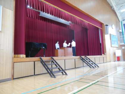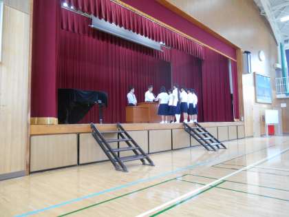今日は臨時の朝礼がありました。うれしいことにクラブの表彰がいくつもありまして、それが多くたまってしまいました。