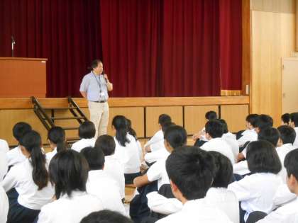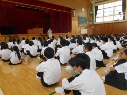生活指導担当の先生から、ワイシャツ、ブラウスの胸ポケットにピンや筆記用具をつけている人がいる、飾りはやめよう、筆記用具についてグラウンドで遊ぶときなどははずさないと危険です、という話しをしました。