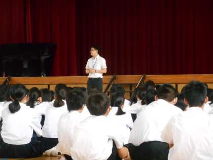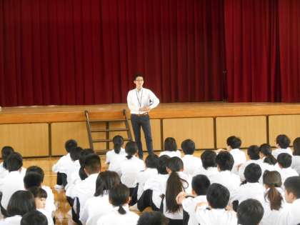 1年の先生から「みんなのこと大好きやねん。だから、考えてほしいこと、注意してほしいことがある。」と前置きがあり、友人を「いじる」行為について、相手がいやがっているとしたら、絶対にやってはいけない、という話しをしました。真剣に聞いていました。