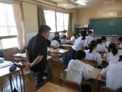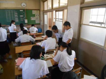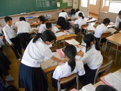 文法の問題をやりながら、先生に聞いたり、友だちに聞いたり、教えたりしているところです。よく勉強していました。