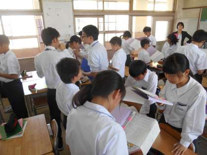 昨日の授業です。市教育委員会から見学に来られた授業です。生徒たちがほぼオールイングリッシュの授業にすばらしいほど、ついていけていました。すごいです。