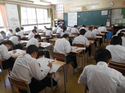 3年生は英語のヒアリングテストが終わって、その後の様子です。