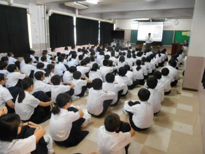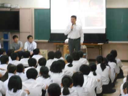 3限に四條畷警察より来ていただき、非行防止教室を開きました。最後にSNSの怖さをしっかりと感じたDVDを見ました。