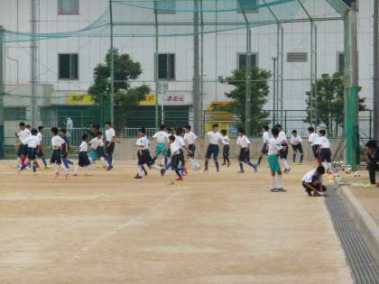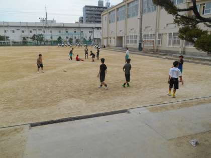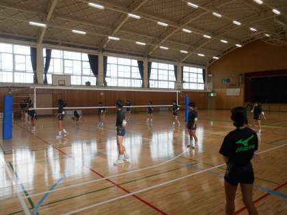 グラウンドでは、ラグビー部とサッカー部が練習し、体育館では女子バレー部のアップが始まっていました。