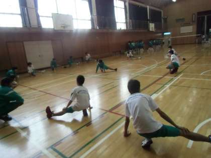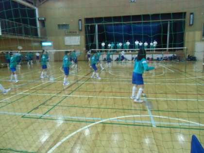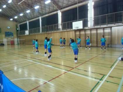朝の練習です。男子バスケット部、女子バレー、バドミントン部です。元気いっぱいです。