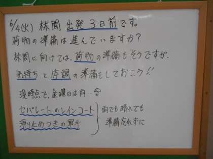昨日のあったか黒板です。林間に向けて、気持ちと体調の準備もしておこう、なるほどと思いました。