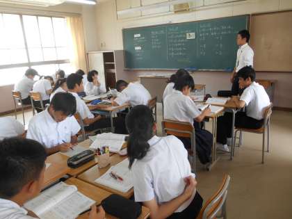 数学の分割授業です。先の3年数学の授業と同じように問題が黒板に書かれていました。