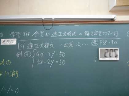 「学習班全員が連立方程式を解けるようになろう。」というめあてです。がんばっていました。