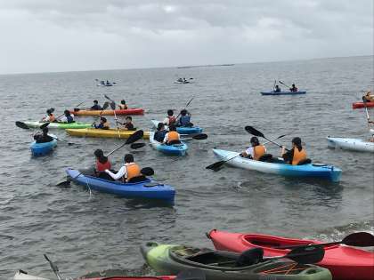 琵琶湖に着くとあっという間に湖上に出て行きました。