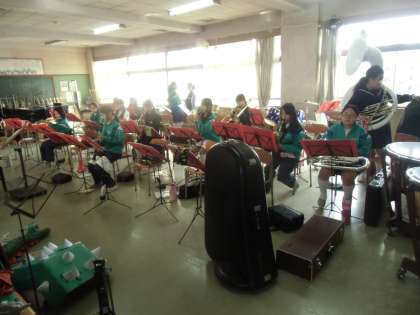 吹奏楽部です。2枚目の写真は、顧問の吉川先生と3年生がピアノを囲んで何やらミーティング。吹奏楽部は11月14日の市中研学芸の部(サーティホール)で学校を代表して発表してくれます。