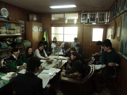 土曜チャレンジが12時終了し、校長室で学習支援リーダーの先生が反省会をし、今日の様子、次回に向けてどうしたら、より一層わかってもらえるか、議論しています。