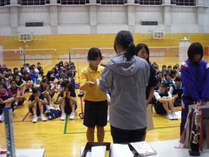 昨日、大東市秋季大会がありました。この大会は、3年生が引退し、2年生が主となる新チームの初対戦の場となります。団体、1年シングルス、2年シングルスが行われました。シングルスでは、1年、2年ともになんとか3位に入賞。個人の目標を再確認するいい機会になりました。団体戦は、住中を含む上位3校がすべて6勝1敗という接戦となり、結局ゲーム数で住中は3位になってしまいました。2−1ではなく、3−0で勝てるチームに成長し、来年の春季大会では優勝を狙いたいです。