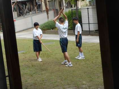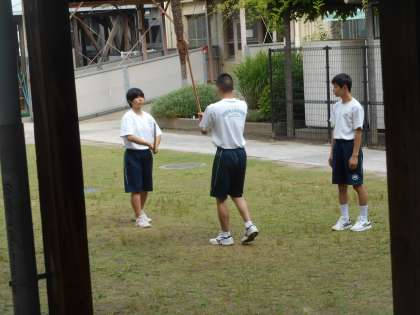 体育館では女子バレーが、中庭剣道部が練習していました。