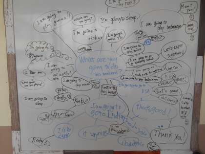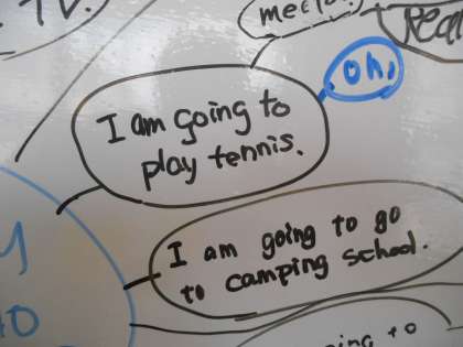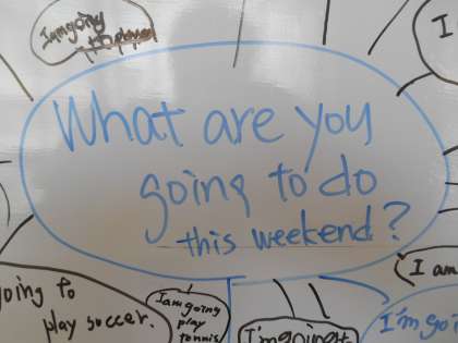 英語で質問が書いてあり、それに自由に回答しています。見てのとおり、多くの生徒が参加しています。