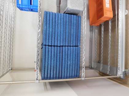 この写真は給食のごはんが入っているケースのふたです。保健委員会の人たちが当番で給食後に配膳室に行き、分別して整理していきます。ご覧のとおり、とても美しく整理してくれました。ありがとう。