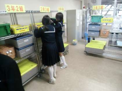 給食当番が月曜なので交代です。なぜか今日は「ごちそうさま〜。」の声がいつもより多かったです。うれしいです。
