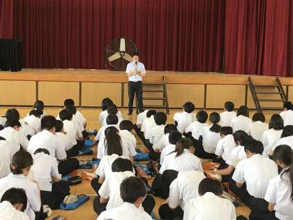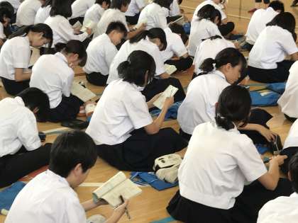 明日の校外学習に向けて、行程や活動内容、係の仕事の確認を行いました。しおりを開いて、必要な所をチェックしています。