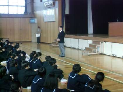 表彰の後は校長先生からのお話がありました。続いて、中村先生から登下校の際の注意点がお話しされました。、