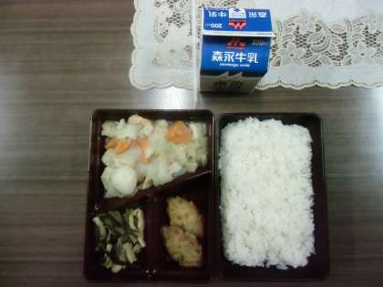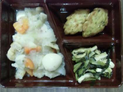 今日は洋風ふくめ煮、木の葉豆腐、小松菜の煮びたしでした。
