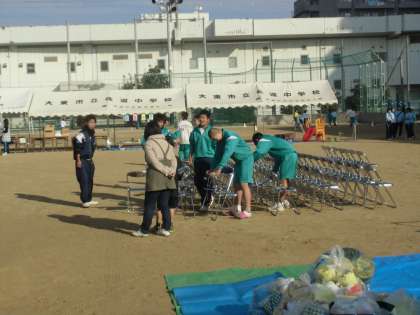 11月17日(日)ふれあいフェスタ直前の準備です。やっぱり、生徒たちが看板をどうするこうするとか、ステージの椅子の準備などをしてくれました。
