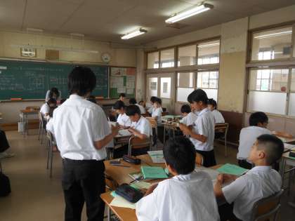 バランスの良い食事と悪い食事について、発表しているところです。それが、ペアで手を挙げた二人が指名されていました。一人ならともかく、隣同士で「発表しよう。」というペアが何組もあって、感心しました。すばらしい。