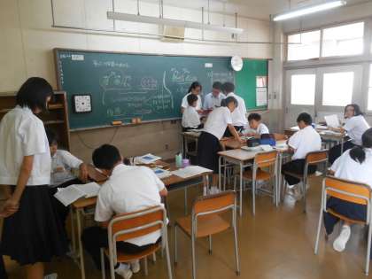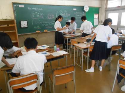 分割授業です。「予習をする生徒がいるので、すごくいいことだと思います。」と担当の先生の言葉です。すばらしい。
