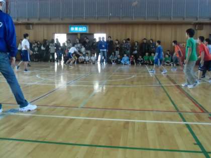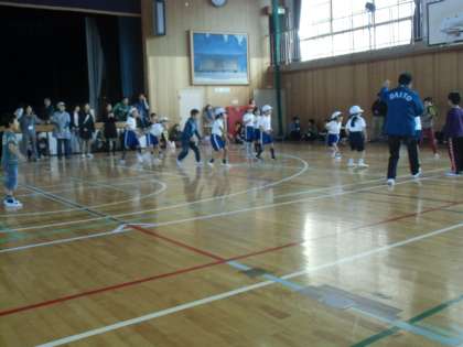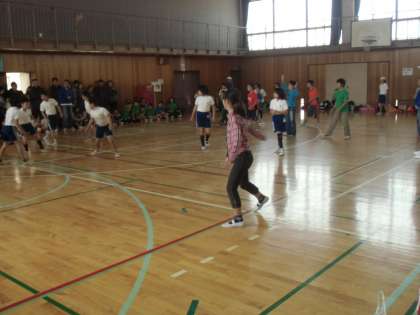 体育館では小学生(住道南小、泉小、住道北小)の低学年・高学年でドッチビーの試合が始まりました。今年初の取り組みです。行ってみると、すごく盛り上がっていました。