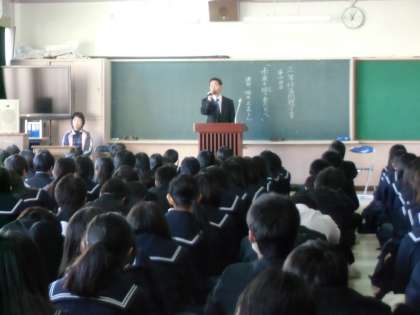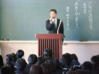 昨日の3・4限3年生人権講演会に北条人権文化センター勤務の梅本正直様に来ていただきました。ご自分の生い立ちから、差別についていろいろなことをお話いただきました。80分ほどの時間、ピーンと張り詰めた雰囲気で生徒たちが話を聞いていました。