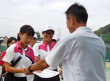 8月24日に関西創価学園テニスコートで行われた三市大会で3年生が引退となりました。3年生の部で優勝したペアは昨年の夏季、秋季、今年の春季、5月の選手権大会、そしてこの夏季大会で5連覇という偉業を達成し、有終の美を飾りました。