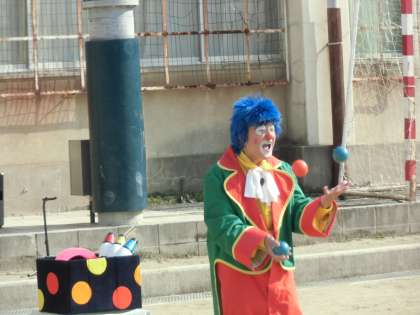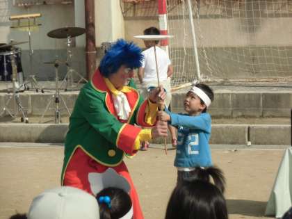クラウンさんは、日本で初の道化師の学校を作り、その校長先生をやっておられる方です。そんな方が住道南小の関係者ということで、びっくり。その縁があって、今回のフェスタに来ていただきました。子どもたちが大喜びでした。