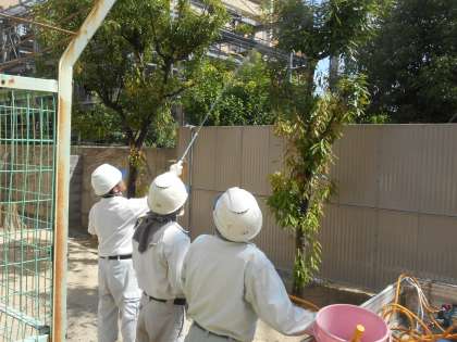 毎年恒例の樹木への薬剤散布をしたもらいました。今日も35度を超す猛暑です。本当にありがとうございました。