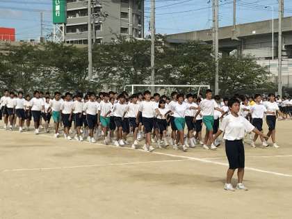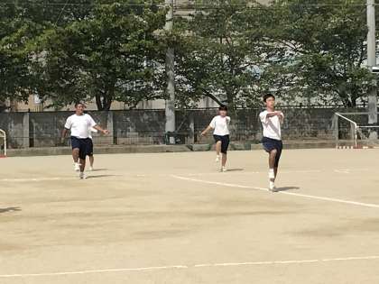 一限、3年の学年練習です。行進の練習ですが、早くもビシッと決まっています。かっこいいです。すばらしい。