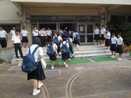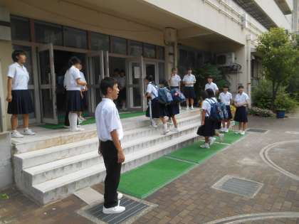 今朝は住南小へ生徒会役員の人たちがあいさつ運動へ行ってきました。その後、住中であいさつ運動です。お疲れ様です。玄関を入ったところには吹奏楽部の人たちもあいさつ運動参加です。みんな、ありがとう。