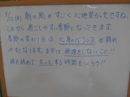 書いてあるとおり、この季節の変わり目は体調に本当に気をつけないとすぐに崩してしまいがちです。特に夏から秋はしんどくなりがちですね。