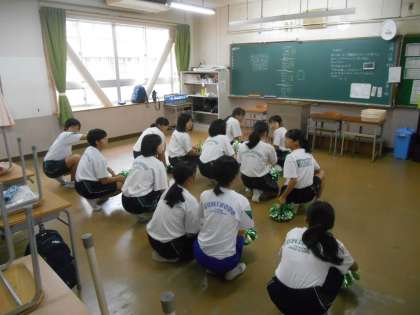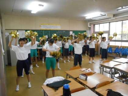 1限、雨ですので、男子は体育館で女子は教室で練習しました。女子もすばらしいです。理由はダンス委員を中心にみんなで声をかけ合って、「そろってないでー。」「もう一回やろう。」などと動きを確認しながら練習していたからです。