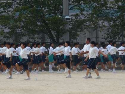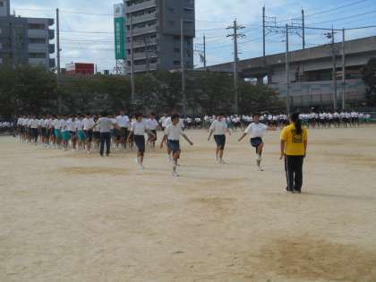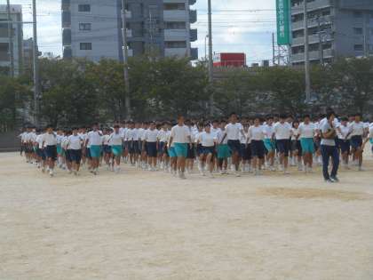 生徒会役員を先頭に行進練習です。こちらも全体で初めてにしてはすばらしい出来です。