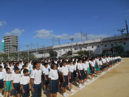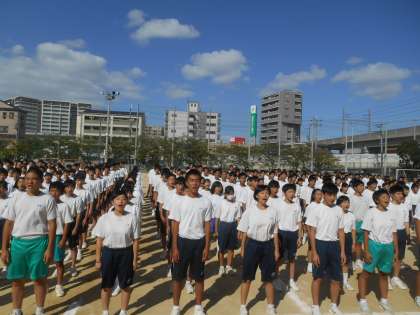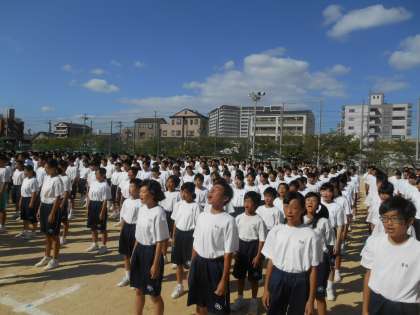 校歌、国歌の練習をしているところです。音楽の先生が「あまり言うことがないほど、いいですよ。しいて言えば、2番の♬ほが〜ら〜か〜に〜、の、ほ、をはっきり言うともっといいですよ。」と話していました。朝から声が出にくいところ、ものすごくがんばっていました。すばらしい。